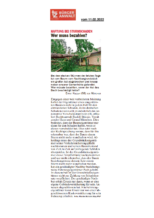 Haftung bei Sturmschaden