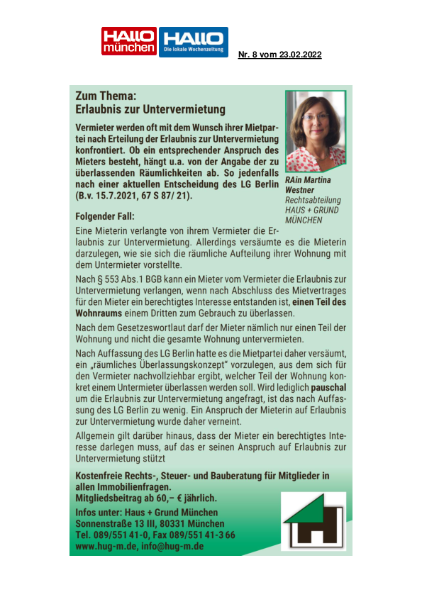 Erlaubnis zur Untervermietung