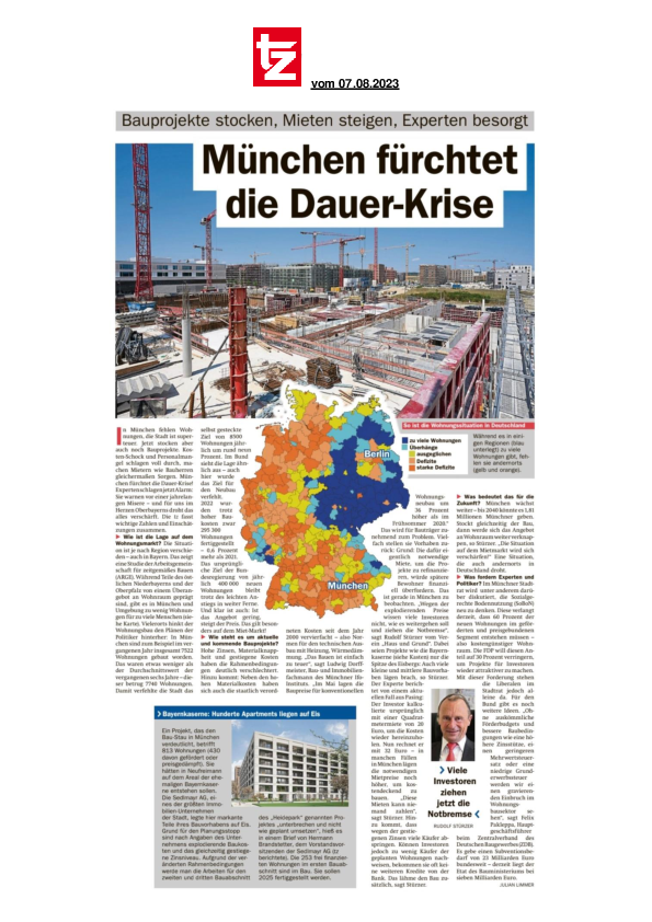 Das bayerische Fernsehen sendet in der Abendschau ein Interview mit RA Rudold Stürzer zu den Gründen für die stark gestiegenen Baukosten