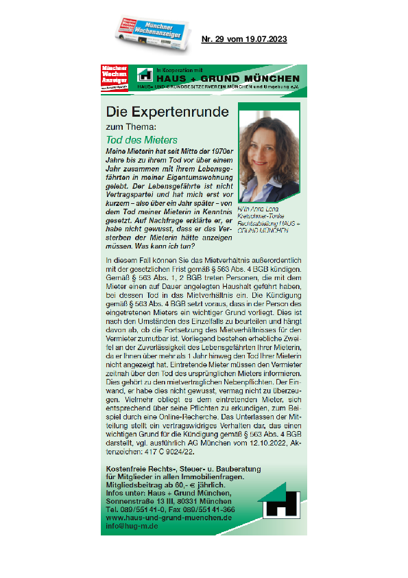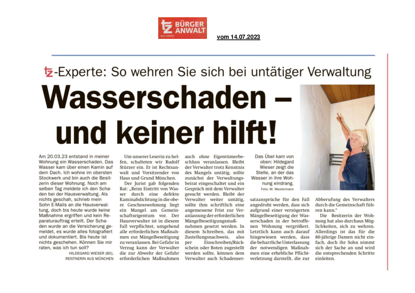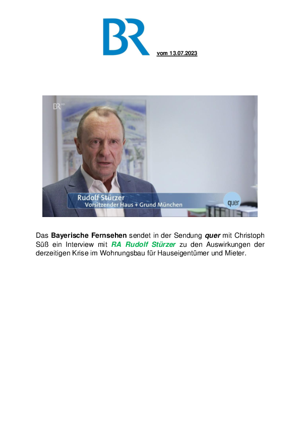 Das Bayerische Fernsehen sendet in der Sendung quer mit Christoph Süß ein Interview mit RA Rudolf Stürzer zu den Auswirkungen der derzeitigen Krise im Wohnungsbau für Hauseigentümer und Mieter.