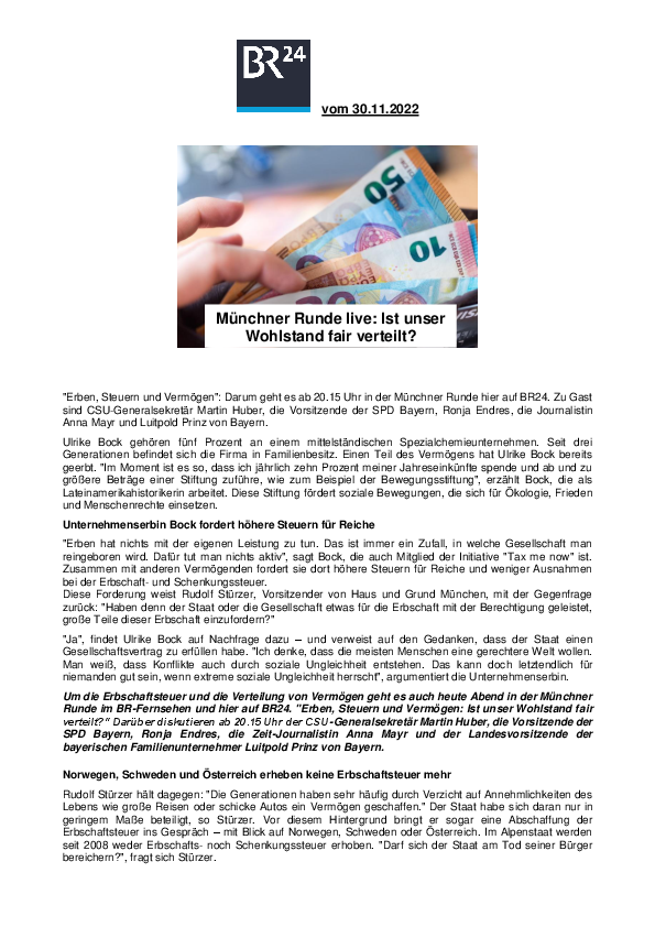 Münchner Runde live: Ist unser Wohlstand fair verteilt?