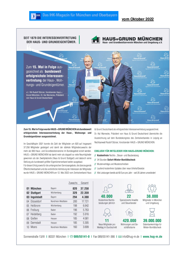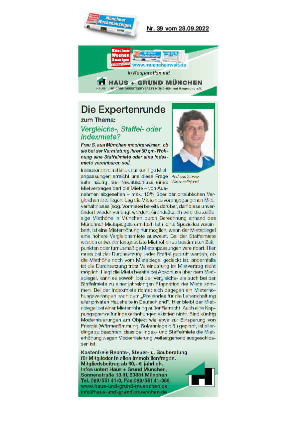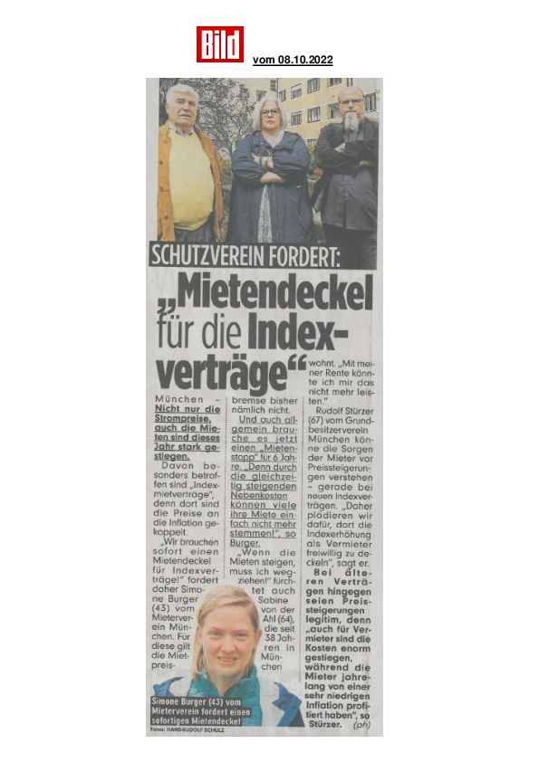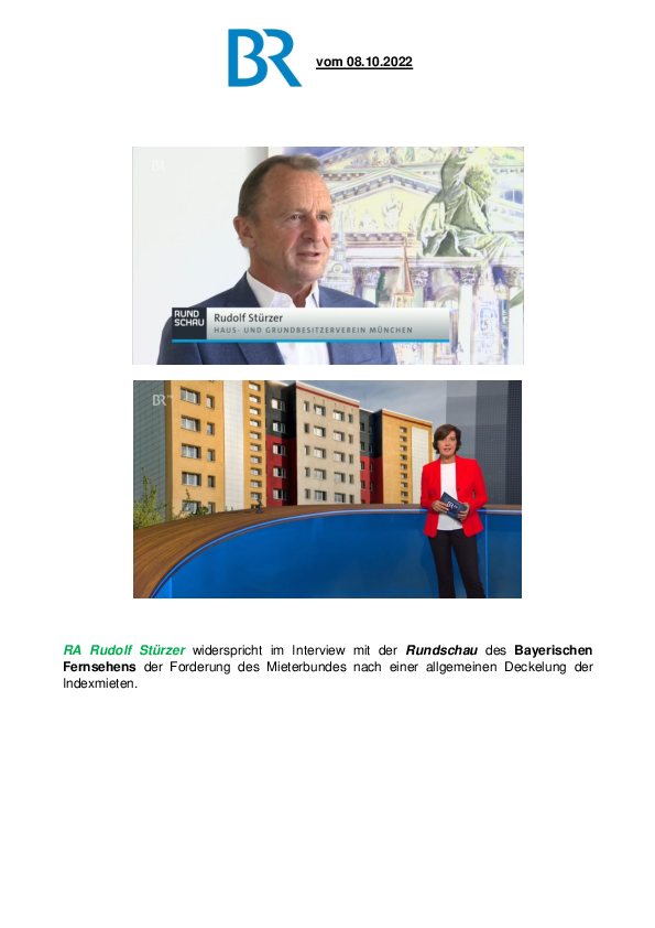 RA Rudolf Stürzer widerspricht im Interview mit der Rundschau des Bayerischen Fernsehens der Forderung des Mieterbundes nach einer allgemeinen Deckelung der Indexmieten.