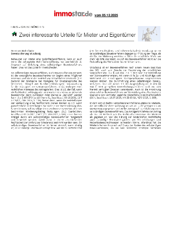 Zwei interessante Urteile für Mieter und Eigentümer