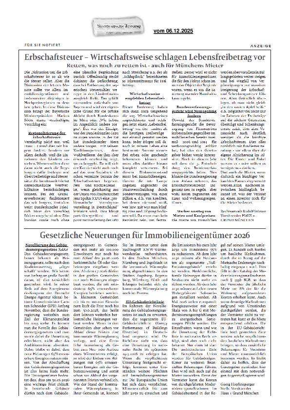 Anzeige Haus + Grund München