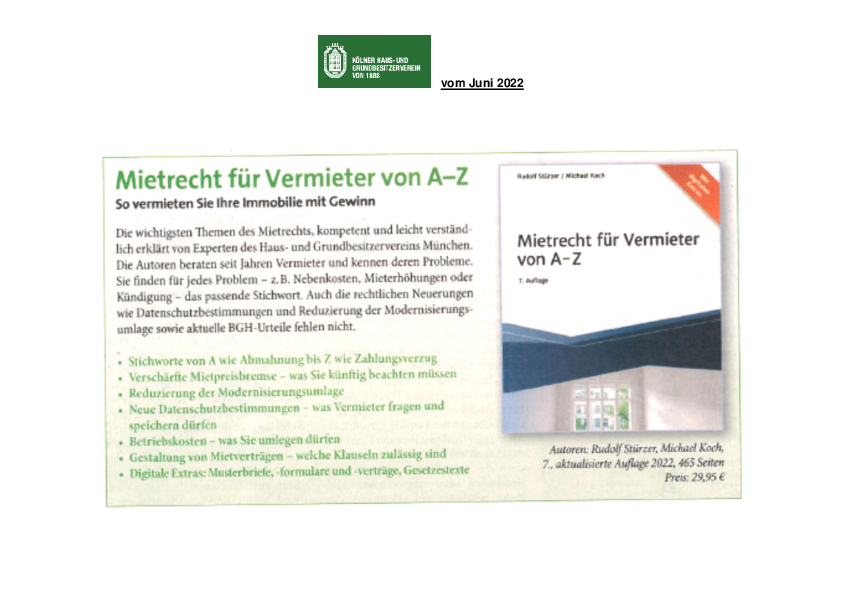 Mietrecht für Vermieter von A-Z