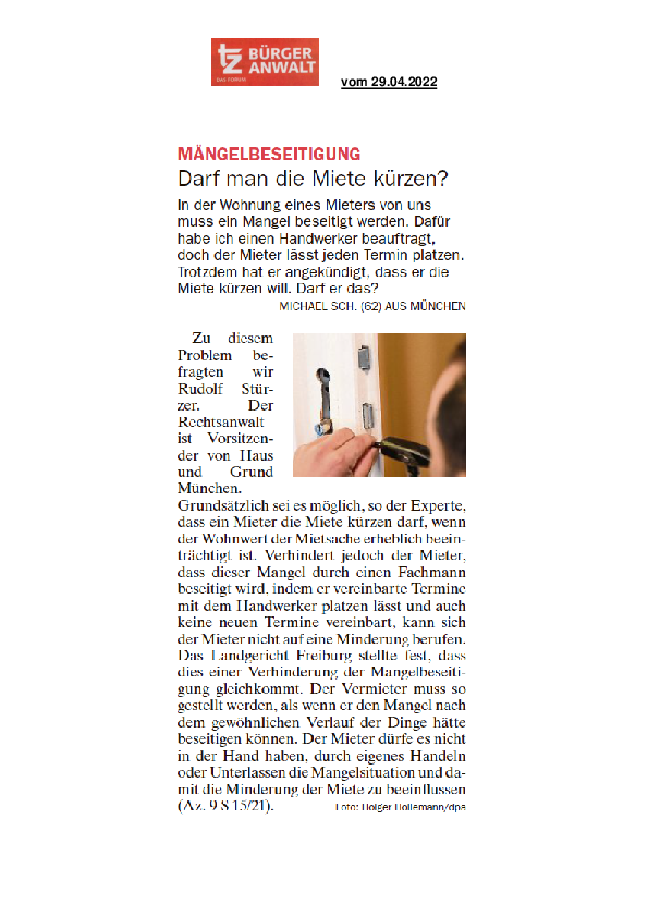 Das Bayerische Fernsehen sendet in der Abendschau ein Interview mit RA Rudolf Stürzer zu den stark steigenden Indexmieten.